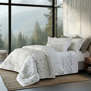 O kit cobre-leito king facilita o acerto de proporção e acabamento com porta-travesseiros no mesmo tecido. Para camadas, adicione edredom na estação fria.
