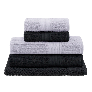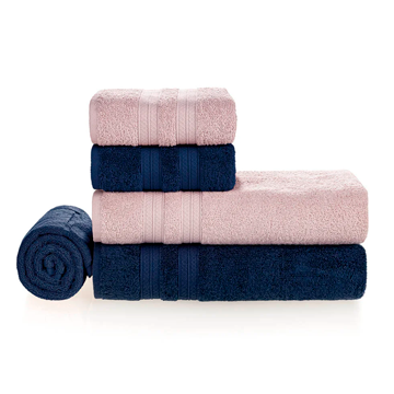 - Jogo de toalhas 5 peças: 2 banho (ou banhão) + 2 rosto + 1 piso — kit completo e coordenado para o dia a dia.
