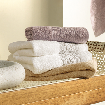 - Banho: toalhas de banho, jogos de toalha e opções para completar o pós-banho com praticidade.