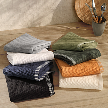 - Felpudo / atoalhado (100% algodão): poder de absorção elevado, ótimo para secar louças e panelas rapidamente.
