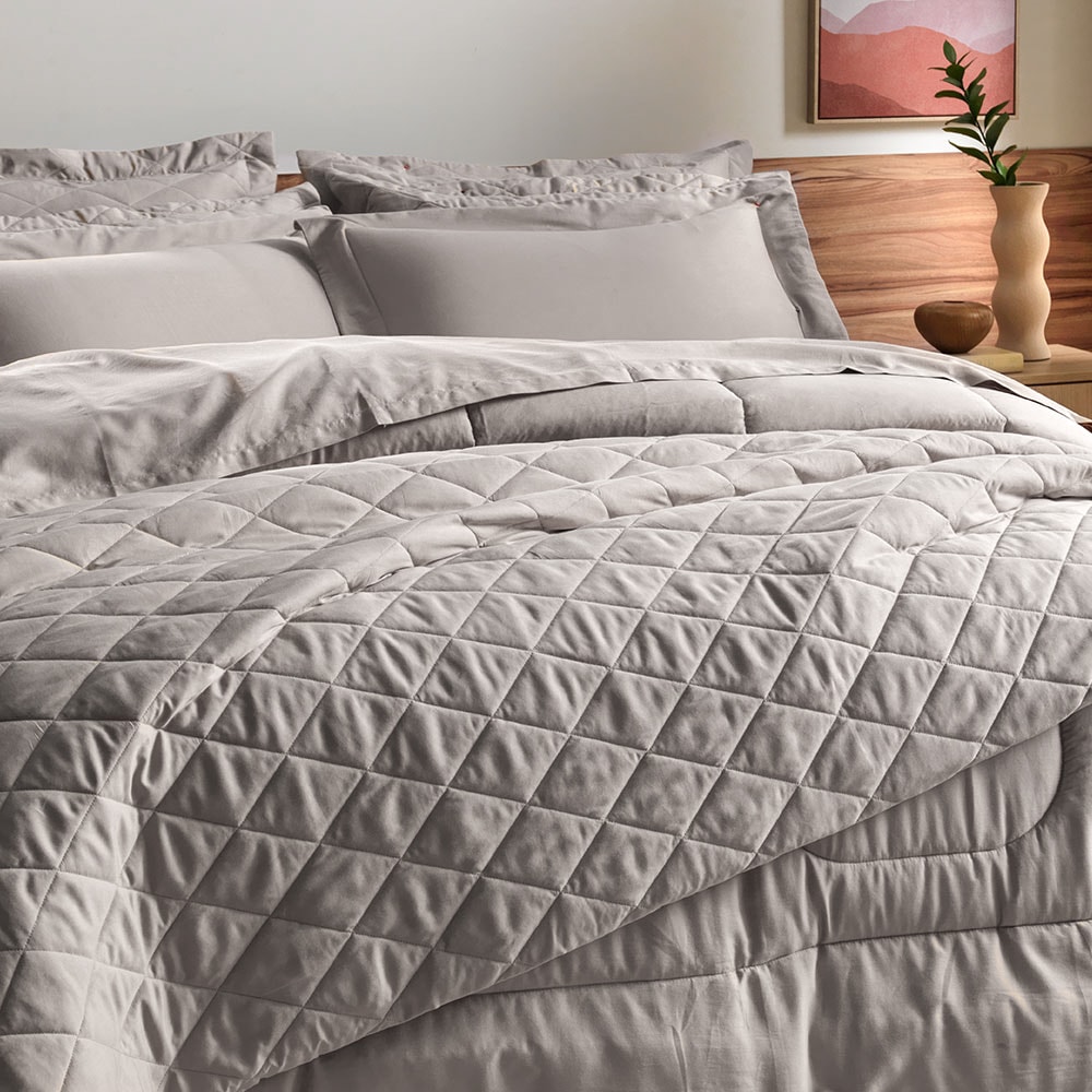 Composto por 3 peças, o Kit Cobre-Leito Colcha King Size Trussardi Madonnari inclui uma colcha de 3,10m x 2,80m e dois porta-travesseiros, todos com um acabamento impecável e matelassado sutil, que confere textura e volume ao conjunto. A tonalidade neutra e os traços artísticos tornam essa peça versátil, combinando facilmente com diferentes estilos de decoração, enquanto a qualidade excepcional da Trussardi assegura durabilidade e um visual sempre impecável.
